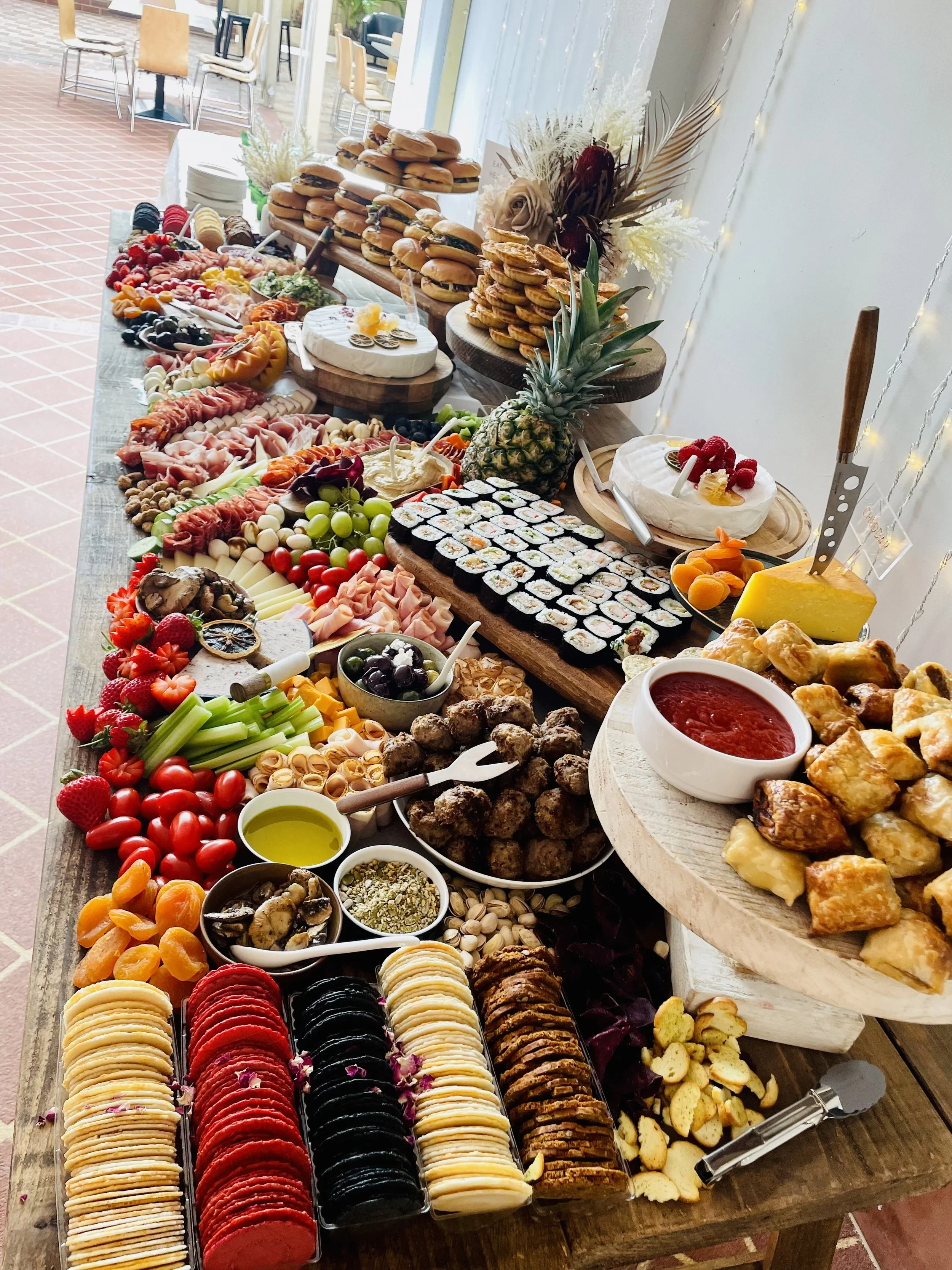 Pricing includes - table, boards, props, serving cutlery, elevated decorations and foliage, mini disposable plates and serviettes. Travel is included, depending on location extra fees may apply.
